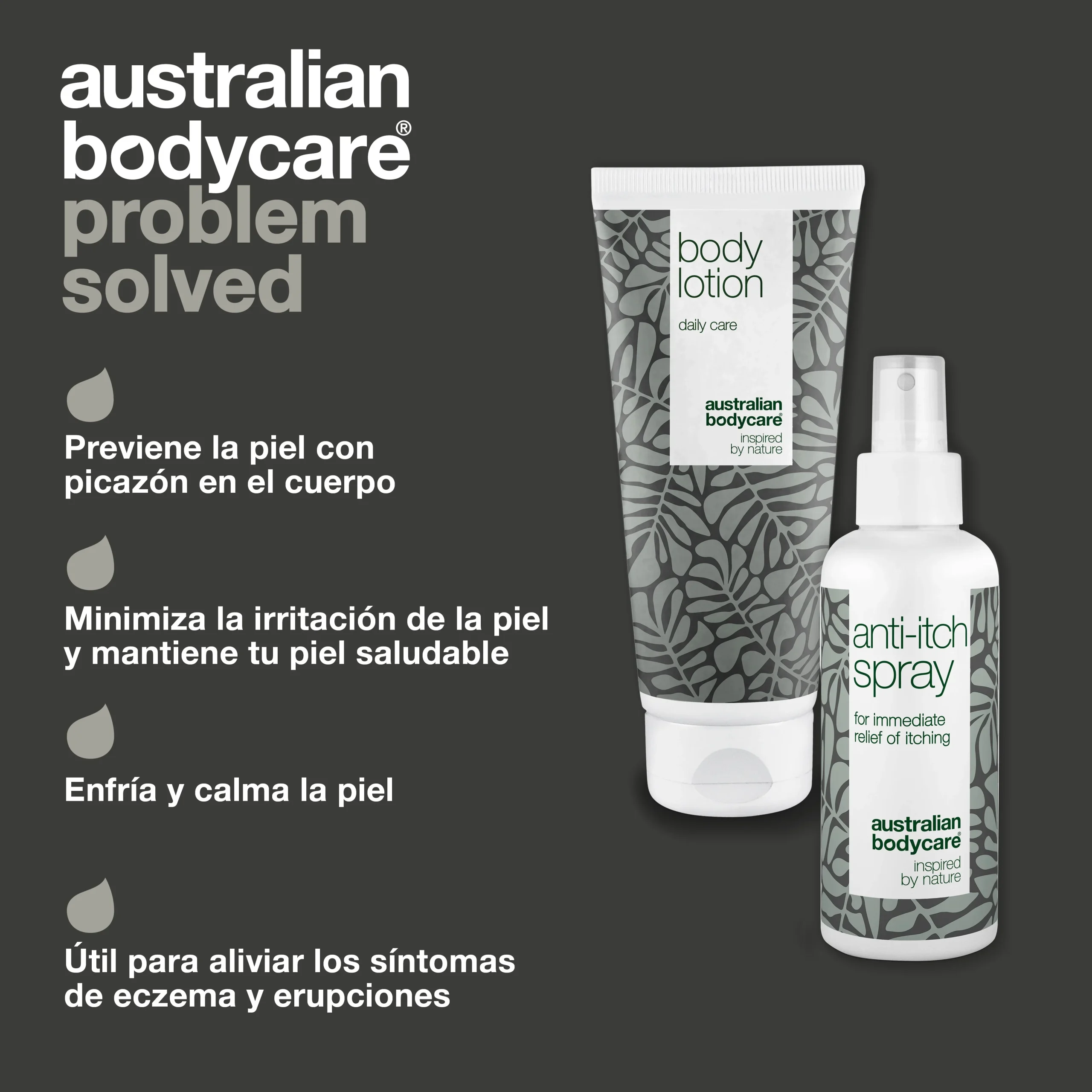 Set de 2 productos para pieles irritadas del cuerpo | El aceite de árbol de té 100% natural contrarresta las bacterias, minimiza la irritación de la piel y garantiza un equilibrio saludable | El Spray refrescante alivia la piel irritada | La crema para el cuerpo proporciona humedad y cuidado para la piel seca.