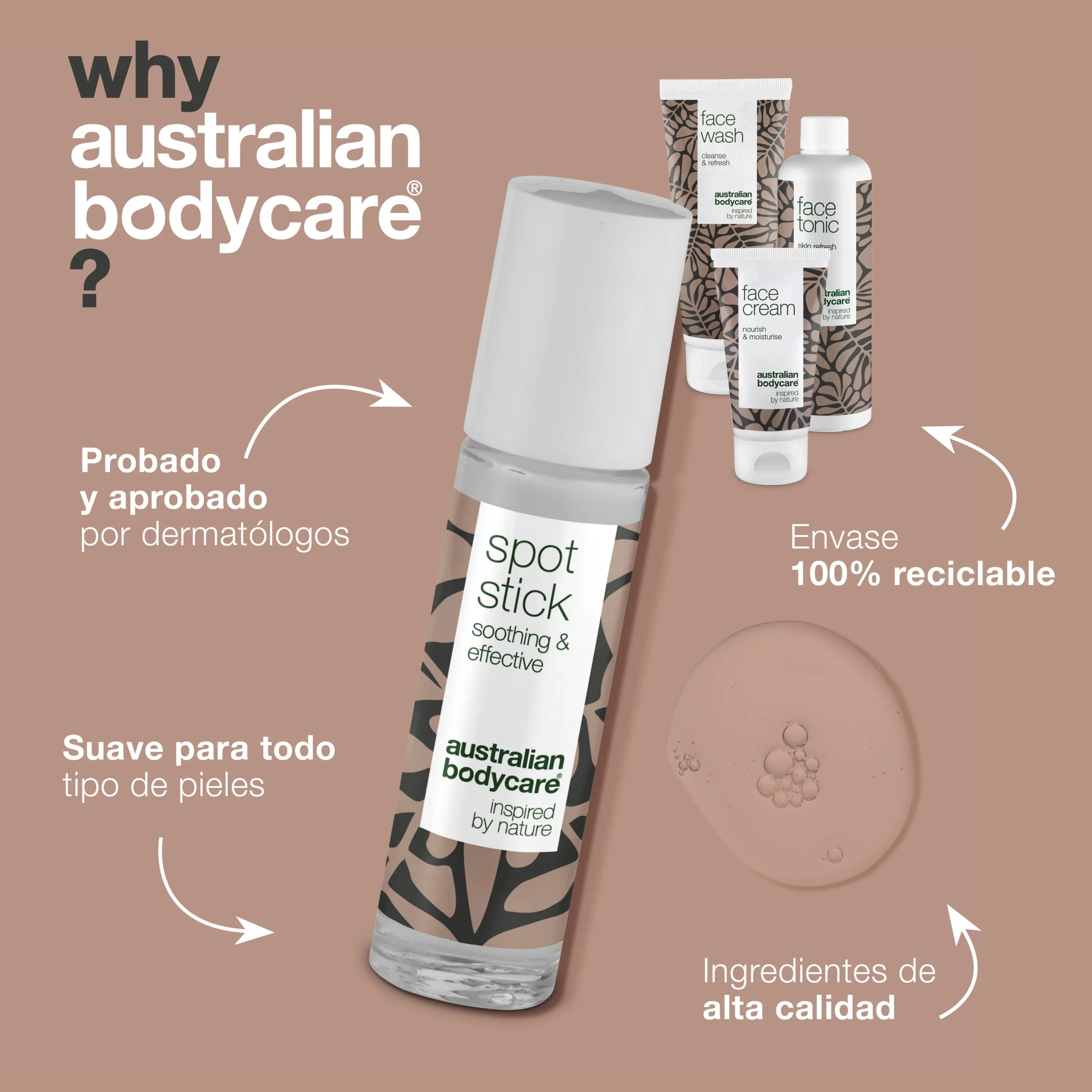 El envase consta de limpiador facial 100 ml, tónico para la piel 150 ml, crema facial 50 ml y Spot Stick 9 ml.