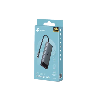 Adaptador TP-LINK UH6120C HUB 6 en 1, 1 puerto USB-C entrada, 1 puerto HDMI 4K, 1 puerto Ethernet Gigabit, 1 puerto USB-C y 2 puertos USB-A