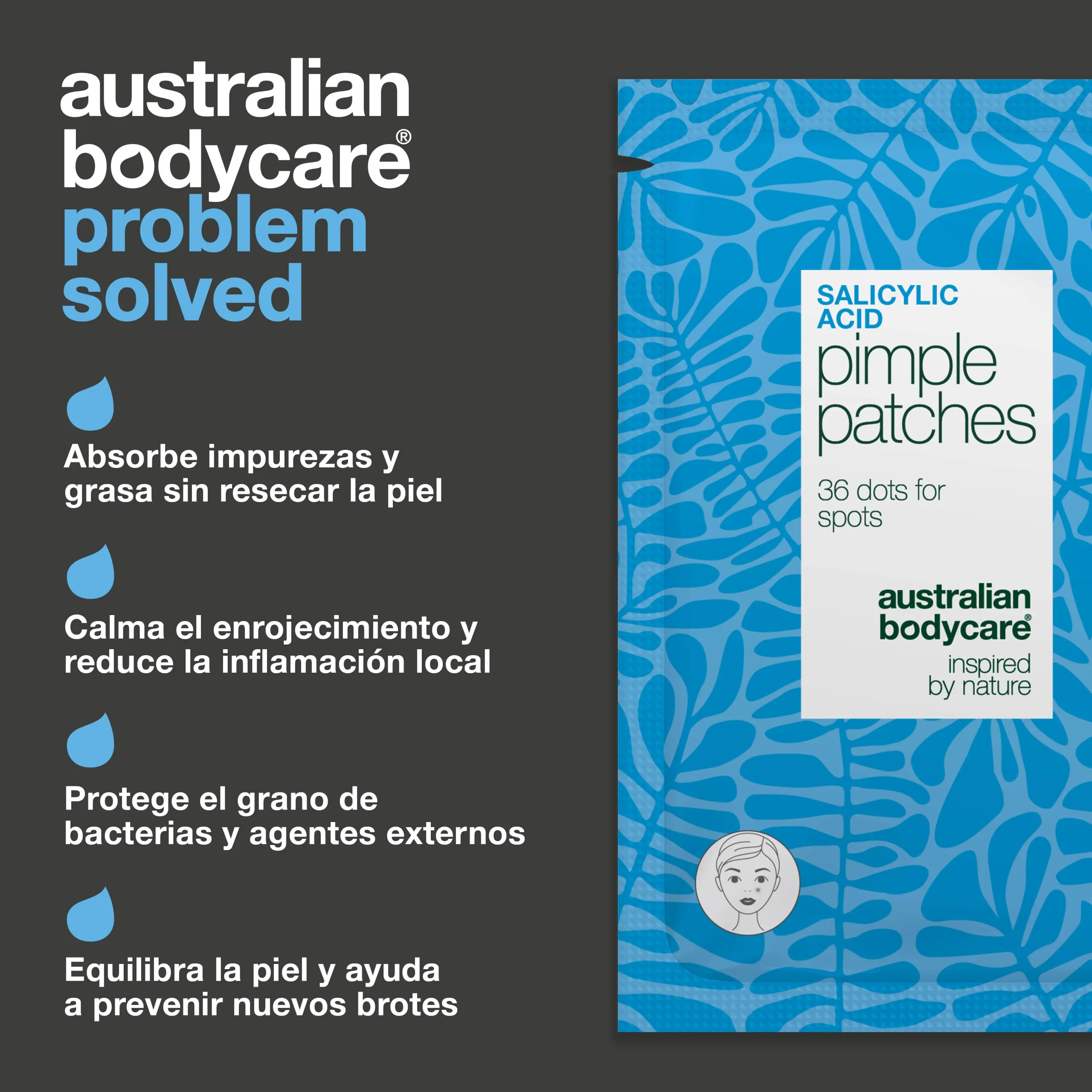 Para obtener los mejores resultados, recomendamos utilizar los parches junto con otros productos faciales con ácido salicílico de Australian Bodycare. Cuando usas productos con los mismos ingredientes activos, tu piel recibe un tratamiento más uniforme y efectivo. Prueba nuestro limpiador facial o el stick anti-imperfecciones para una rutina completa contra los granos y las imperfecciones.